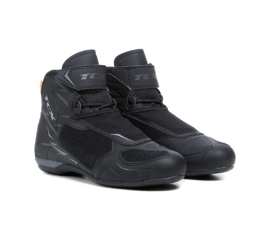 TCX R04D AIR are highly breathable motorcycle shoes that guarantee certified protection and versatility in all situations, from urban transfers to short trips out of town. The mesh fabric upper with hot melt coating combines maximum safety with flawless breathability and ventilation, to keep the foot dry and comfortable in hotter climates. R04D AIR incorporates protective D3O® inserts on the ankle and reinforcements on the toe, heel and gear area. The long-lasting, breathable OrthoLite® insole contributes to perfect thermoregulation for the foot. The Groundtrax® sole, made of wear-resistant rubber, ensures maximum grip on all surfaces, optimal sensitivity and comfort suited to an all-day motorcycle shoe. R04D AIR features laces complete with gaiter and Velcro to adjust the collar area, a Bycast leather lever guard and a reflective element on the back.
