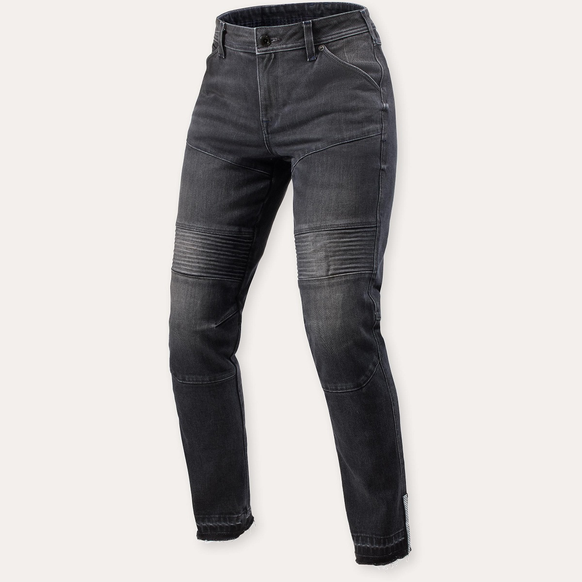 A new archetype for women in our denim collection, we introduce the Moto 2 Slim Ladies. Fashionable riding with a unique twist. A strong foundation Building upon the popularity and momentum of our already established men’s Moto jeans, we bring you the Moto 2 Slim Ladies. Sleek and sophisticated riding denim. The Moto 2 Slim Ladies are characterized by a slim fit style, higher waist, and a 5-pocket construction—complete with slanted front pockets instead of the traditional curved pocket intake, and a depth-creating print on the coin and back pockets. The “destroyed” finish at the hem also ups the ante in terms of uniqueness. Furthermore, around back, a block-print pattern is added to the 2-part rear pockets and coin pocket. Stand out You’ll immediately notice the functional front dart and stretch lips at the knees, along with a seam at the backside of the knee. These details put together mean the Moto 2 Slim Ladies jeans have a 3D, pre-shaped curve in the knee area, equating to instant comfort. These are also the first jeans we’ve made that don’t have the traditional folded bottom hem. After washing, the hem will be unfolded, resulting in a frayed edge. But don’t worry, the reflection will continue to the outside so when the hem is let down, you can keep the feature without having to roll it up if you don’t want to! Stay safe In terms of safety, the Moto 2 Slim Ladies jeans are created with 15.5oz CORDURA® stretch denim with COOLMAX® & Thermolite® elements. There are also SEESMART protectors included at the hips and knees. Adjustable knee protection pockets come as a standard feature.