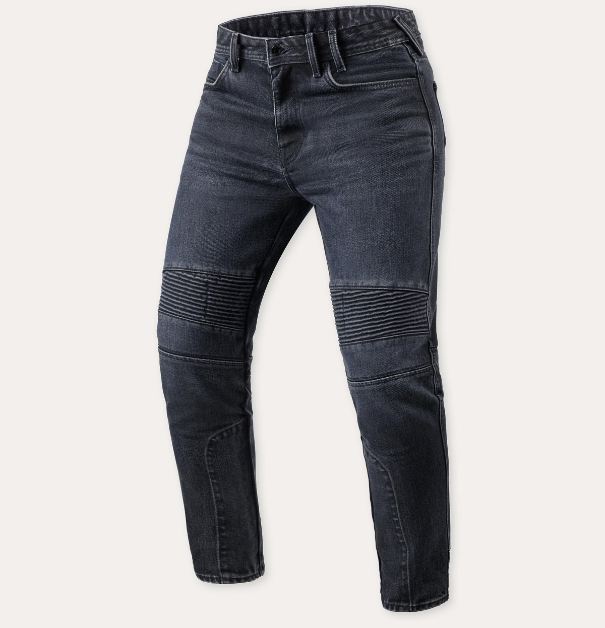 Tapered Fit, fashionable, and road-ready motorcycle denim. The Moto 2 TF (tapered fit) motorcycle jeans combine the best of both worlds. They’re motorcycle-ready, while at the same time, are spot-on when it comes to contemporary fashion trends. They feel comfortable at the waist and thigh area, while from the knee down the model tapers, becoming narrower as they reach the ankle. Taking the fit of a leather motorcycle pants as starting point, these jeans are the perfect companion for longer rides if you like a more sportive look. The secret lies in strategically positioned stretch lips that allow for full freedom of movement on the bike and add to the Moto 2’s all-round style. A dark grey wash is used and, therefore, easy to combine with any leather or textile jacket. Adjust the knee protection to one of the two the heights you find most comfortable. Furthermore, reflection at the turn up makes it possible to be more visible when you roll up the legs. Long or short rides, leather or textile jacket, the Moto 2 TF motorcycle jeans are up for the challenge.
