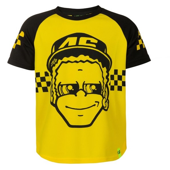 Kid short-sleeved t-shirt part of Valentino Rossi’s VR46 Classic 2020/21 collection. The t-shirt is made of polyester mesh with VR-Dry technology and regular fit. On the chest there is a large caricature of the Doctor on a pattern inspired by the checkered flag, repeated on the sleeves. On the back are printed the number 46 and The Doctor that accompany VR46 on the Yamaha M1 he rides with in MotoGP.
