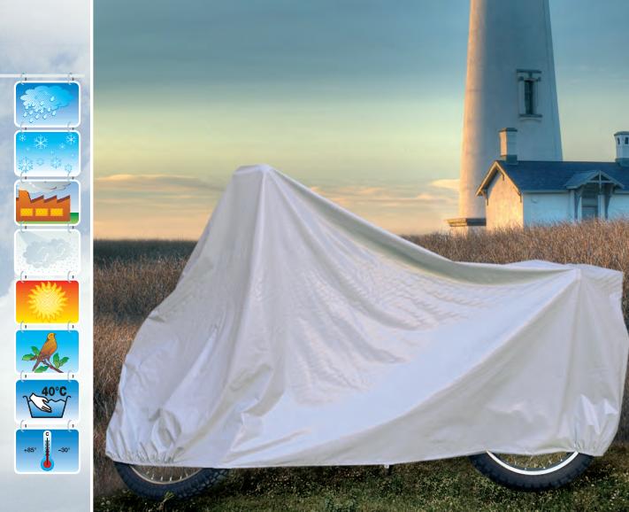 Bacall Classic Line California is 100% waterproof, soft inside, long-lasting, robust and tearresistant. The cover is made with a special PVC layer coupled with a soft, non-woven lining that protects your vehicle in all weather conditions throughout the year. It’s easy to put on and take off, and offers full protection in all weather conditions, such as rain, dust, sunlight, snow and environmental pollution. Excellent value for money; . MODELS: YAMAHA: TDM, XJR, XJ6, FZ1, FZ8, FJR, MT01, SUZUKI B-King, Hayabusa, Gladius; KAWASAKI ZZR1400, Ninja ZX-10R, HONDA: CB1300, VFR, DUcati Multistrada, Aprilia Pegaso, Shiver, YAMAHA: Majesty 400, X-Max, T-max, Tri-city, X-city, Tenere, Supertenere, XV950; SUZUKI Bandit, Burgman, PIAGGIO: Beverly, MP3, X7, X8, X9, X10, Kymco DownTown, KTM990 Supermoto R, LC4 Duke 690, KAWASAKI Versys 1000, Grand Tourer, HARLEY DAVIDSON Sportster, HONDA CB, CBF, Crosstourer, Deauville, Pan European, NC, Silver Wing, Transalp, Varadero, APRILIA Atlantic, Caponosrd, SRV850, Dorsoduro, Scarabeo 125-500, SR MAX, GILERA Nexus, GP800 ; Dimenzije (2xŠ+2xD x 2xH+Š) = 645x344cm Kat.br. MCE1/5