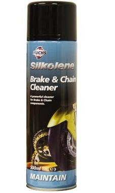 Sprej za čišćenje lanca i disk kočnica 500ml; A powerful cleaner for Brake & Chain components. With its powerful spray, FUCHS SILKOLENE Brake & Chain Cleaner is perfect for removing unwanted deposits from chain and brake components – leaving no oily film whilst maintaining chain and brake performance. Safe to use on seals and hoses. Directions for Use: Spray on, allow to penetrate, agitate as required and allow to dry. FUCHS strongly advise that the clean chain is lubricated with a FUCHS Silkolene Chain Lubricant. Directions for Use: Spray on, allow to penetrate, agitate as required and allow to dry. Use with a FUCHS Silkolene chain lubricant. Avoid contact with paint surfaces. Kat.br. SI153